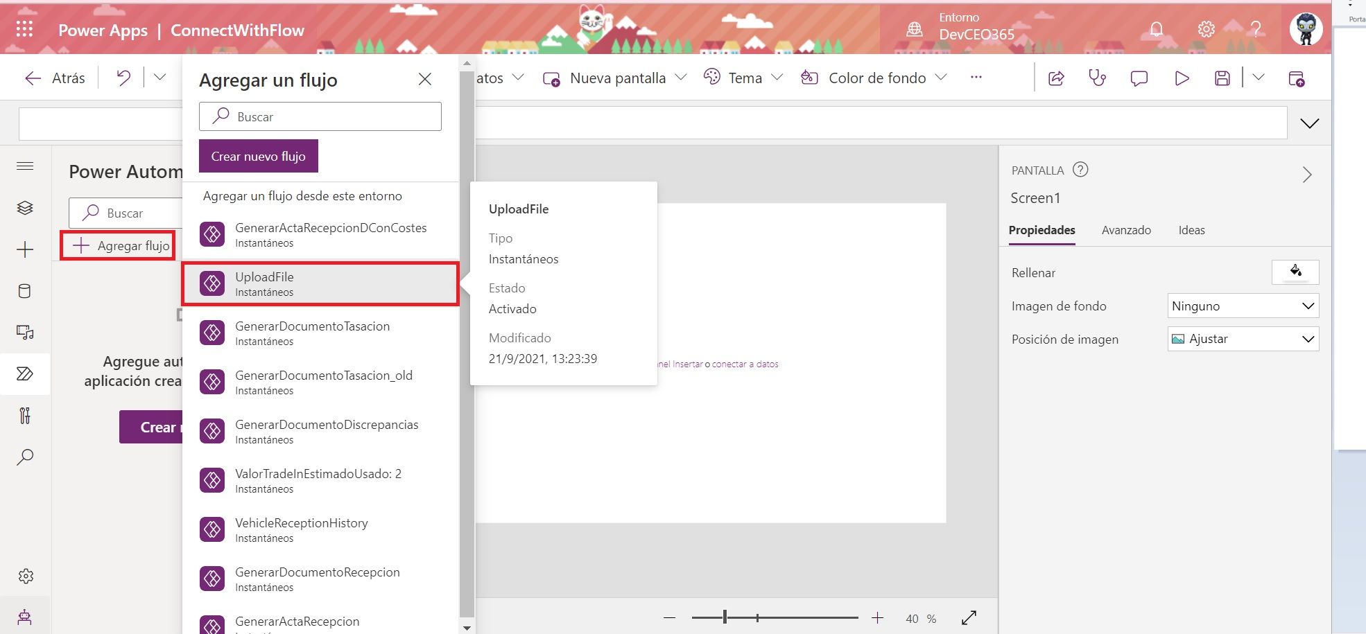 Seleccionaremos el flujo de todos los que tenemos creados en nuestro entorno y ya estará listo para usarse.