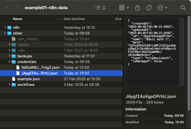 n8n import:credentials --separate --input=backups/latest/Para el caso de la instalación local "normal" (npm)