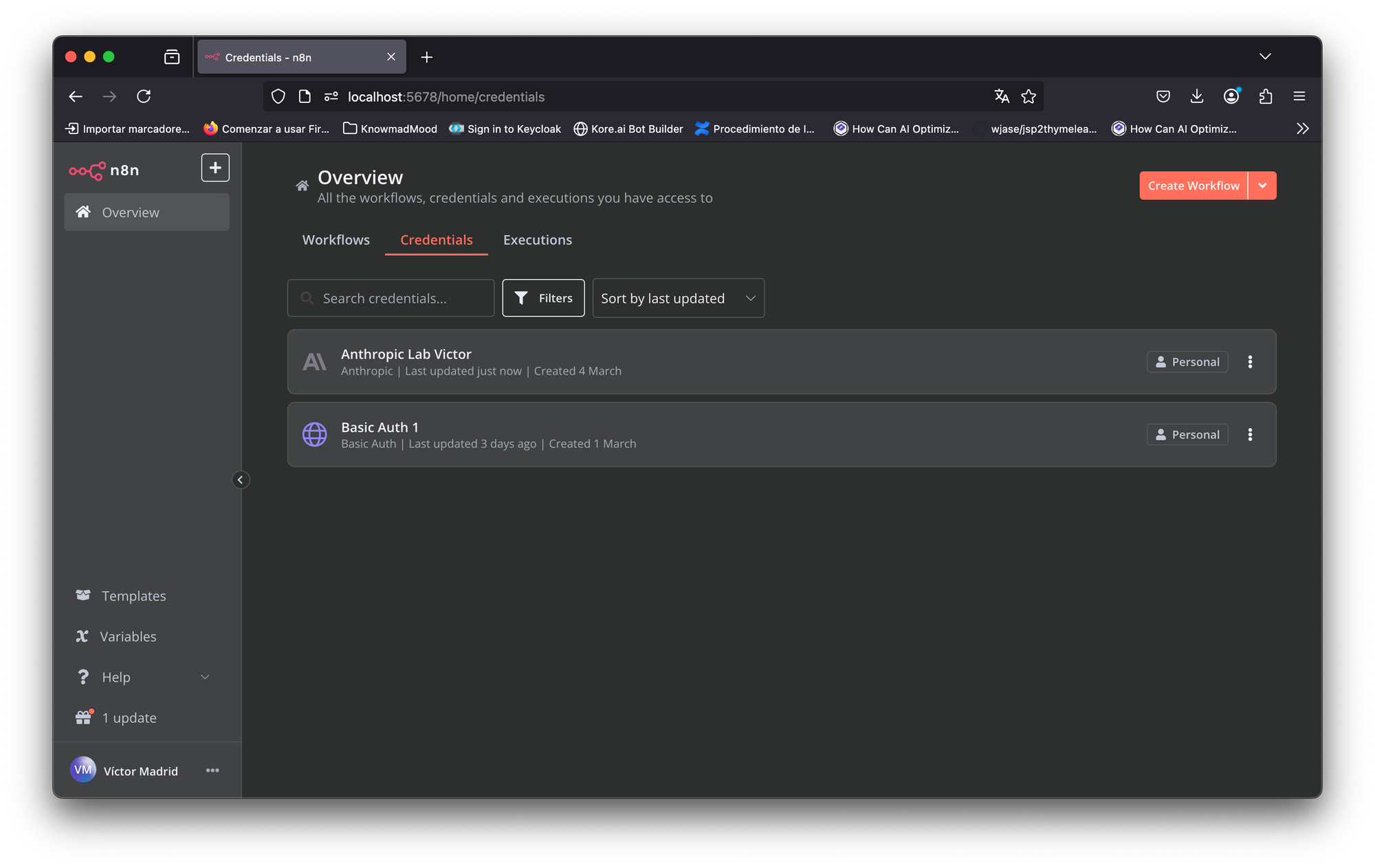 - Los credenciales se manejan de forma independiente a los workflows por temas de seguridad.