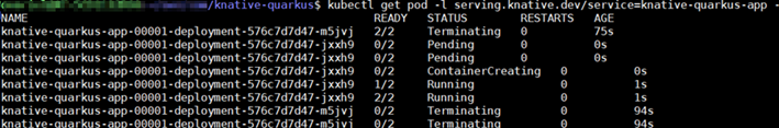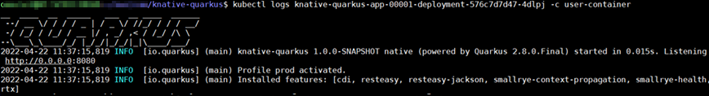 Service 'knative-quarkus-app' created to latest revision 'knative-quarkus-app-00001' is available at URL: