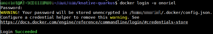Una vez creada la imagen es necesario subirlo a un repositorio de imagen público, esto solo es necesario para nuestras pruebas locales y para agilidad en nuestro caso de prueba, por lo que utilizamos en este caso Dockerhub para realizar el proceso de subida y que Knative pueda hacer pull de la imagen en el momento de crear el servicio: