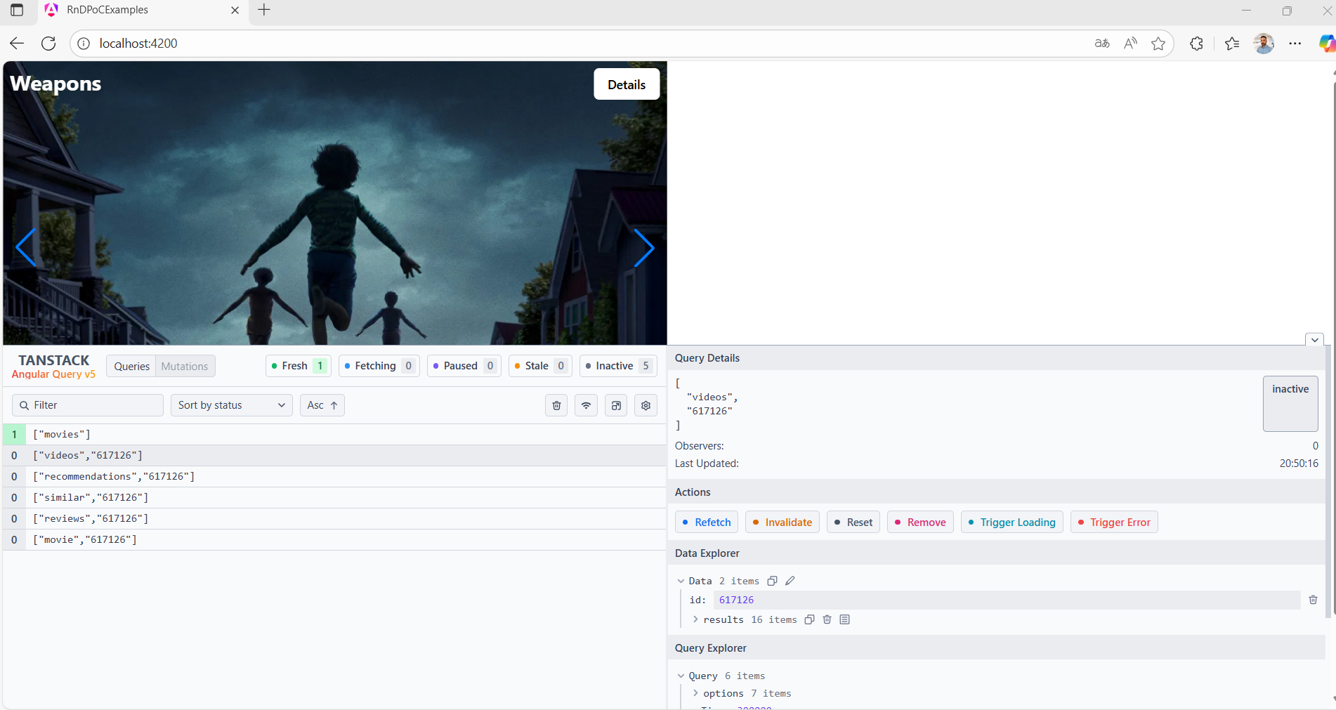Así, el detalle de la película se carga rápidamente, mostrando los datos almacenados en caché cuando están disponibles y actualizando de fondo solo lo necesario. Esto da como resultado una experiencia fluida, incluso si el usuario navega de un detalle a otro en poco tiempo.