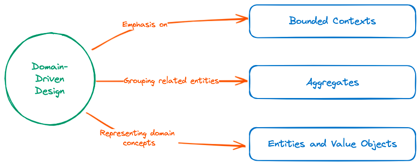 El Domain-Driven Design guía a los desarrolladores en la elaboración de soluciones de software que reflejen con precisión las complejidades del dominio del mundo real. Los principios de Bounded Contexts, Agregados y la distinción entre Entidades y Objetos de Valor sirven como piedras angulares para lograr un sistema bien diseñado y centrado en el dominio. Al aplicar DDD, un equipo de desarrollo involucraría a las partes interesadas para capturar las complejidades del dominio empresarial a través de sesiones de modelado colaborativo.